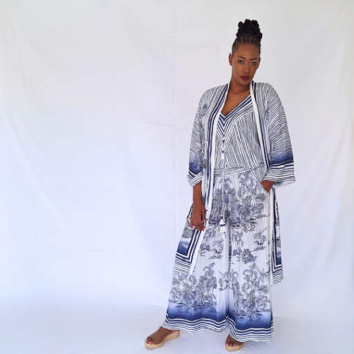 WS24 Jaguar with Palms in Greys Kimono Maxi
